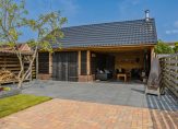 Royale schuur met overkapping: ideaal voor fietsen, gereedschap en een beschutte plek buiten.