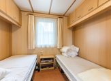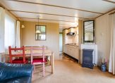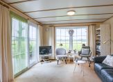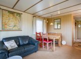 Bij binnenkomst kom je in de hal die toegang biedt tot de verschillende vertrekken. Het chalet beschikt over twee slaapkamers, een keuken met inbouwapparatuur en een woon- en eetkamer met uitzicht over de landerijen. Via de schuifpui in de woonkamer bereikt u het zonneterras, waar u heerlijk kunt genieten van het uitzicht en de rust van de omgeving.