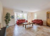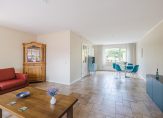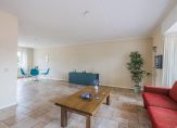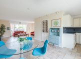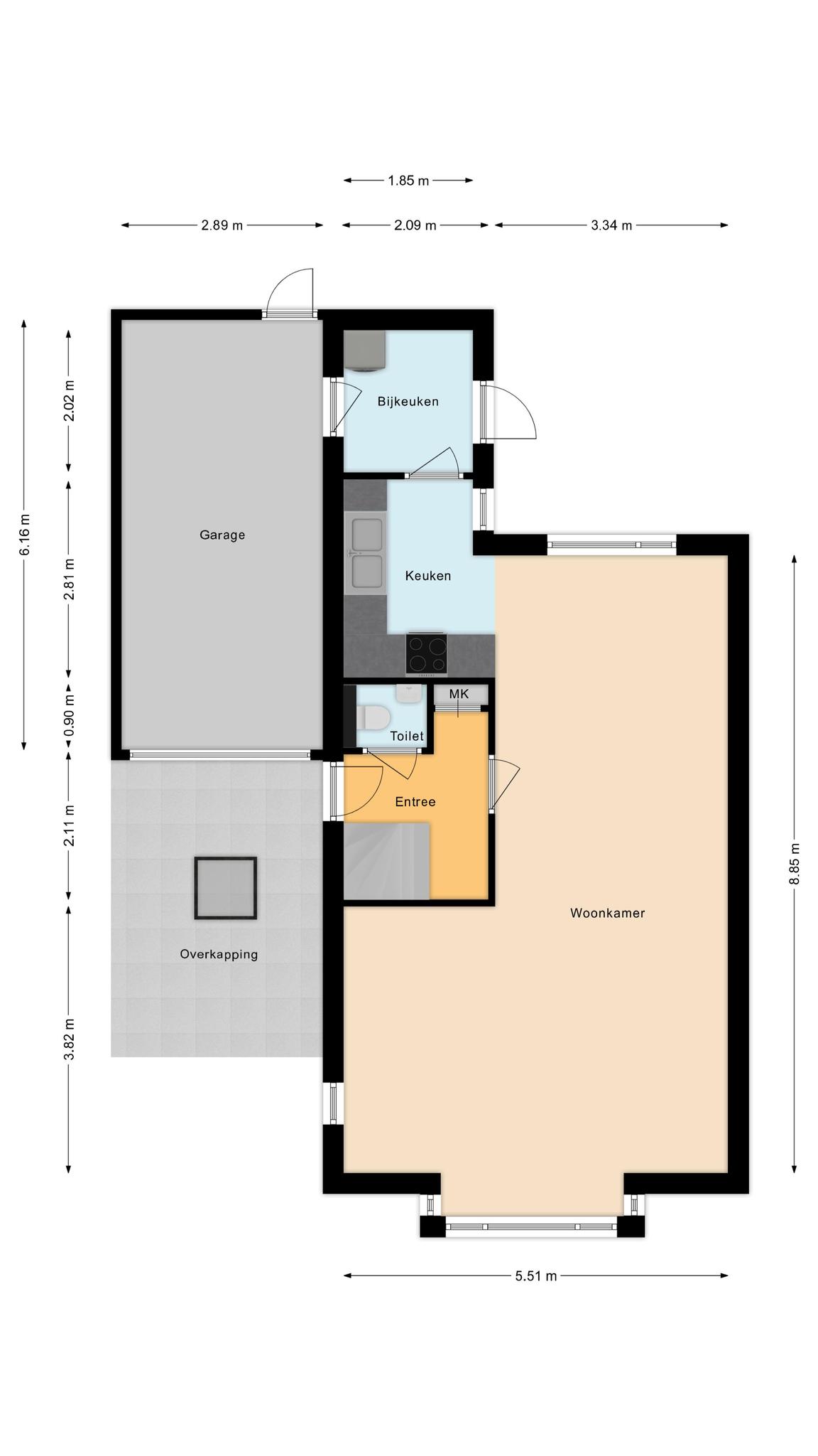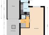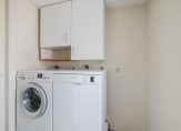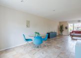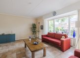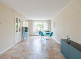 Je stapt binnen via de hal met toilet en komt vervolgens in de lichte en royale woon- en eetkamer. Dankzij de grote ramen heb je hier een mooie lichtinval. De open keuken is uitgerust met inbouwapparatuur en sluit aan op de bijkeuken. Vanuit de bijkeuken heb je toegang tot de garage én de achtertuin met terras.