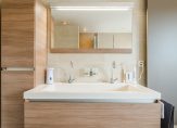 Hier bevinden zich drie slaapkamers, waaronder een royale master bedroom met inloopkast. De moderne badkamer is uitgerust met een dubbele douche, dubbele wastafel, ligbad en tweede toilet.